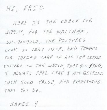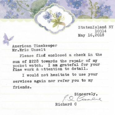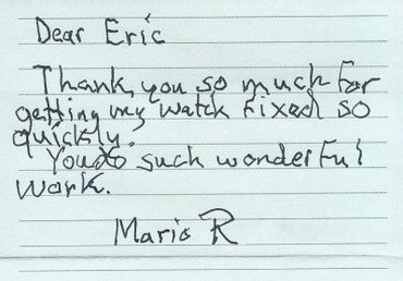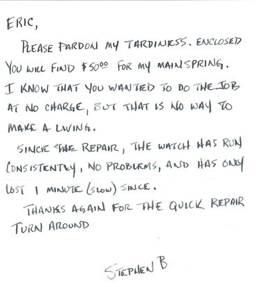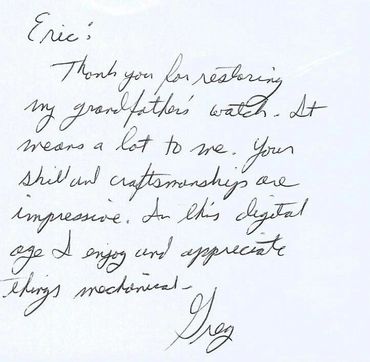 "The reason that I send my watches clear across this continent for repair is that you can trust your precious antique to Eric. He gets it RIGHT the first time."