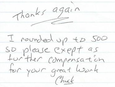 And there was the person who demanded $50 off for paying promptly, the one who insisted that the bill should be forgiven entirely because his aunt attempted suicide, the customer who wrote "the egomaniac" on the check instead of my name because I misspelled his name (Brian instead of Bryan), and the client who shipped his watch wrapped in an old sock.