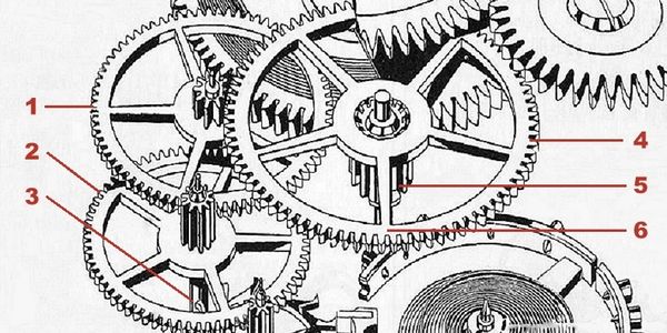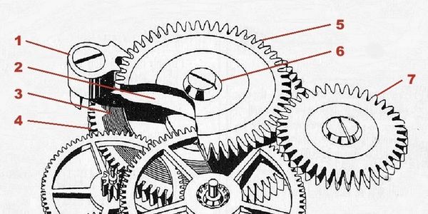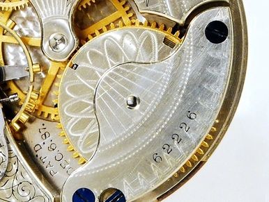 Watch this short video to see how the mainspring torque pushes through the gear train and the lever escapement to impel the balance wheel to oscillate. The design of the watch in this video is typical of nearly all American models during the railroad era, containing a mainspring, three-wheel gear train, anchor or lever escapement, and balance wheel assembly.
