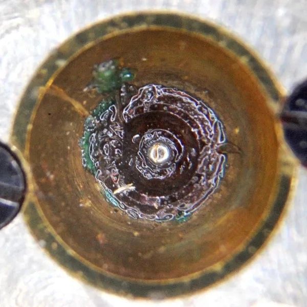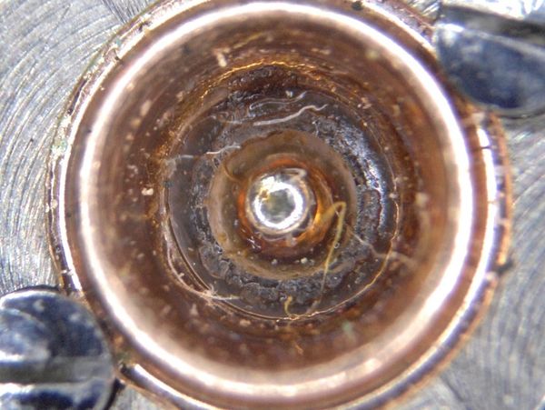 Look at this center jewel from a watch that the customer serviced at home and ask yourself if this piece has been cleaned properly.