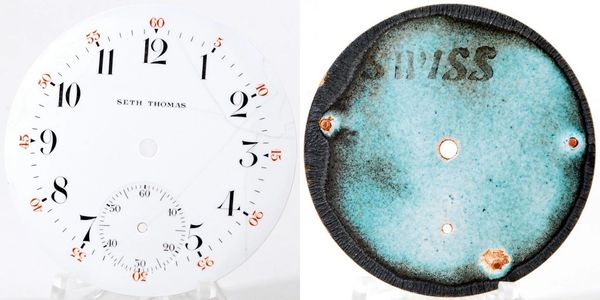 Plastic hinged boxes can hold an 18-size watch dial.