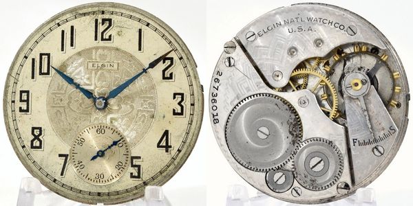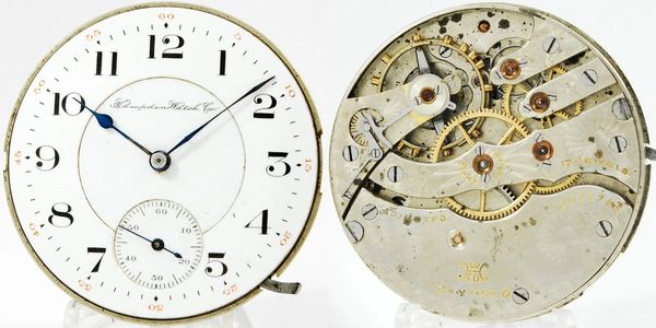 Original-combination 12-size 15-jewel pendant-set Grade 315 has a good balance staff, but a blown mainspring. The dial is flawless and all three hands are correct. The case is a 25-year gold-filled Wadsworth and the crystal is missing. S/N 16694732.