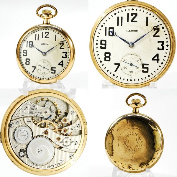 16-size 17-jewel pendant-set original-combination Illinois that would make a nice carry watch if fixed up. Good balance staff, but the mainspring is unhooked or broken. Matching hands cannot be set, so the shuttle spring is likely broken. Metal dial and glass crystal. S/N 2975535.