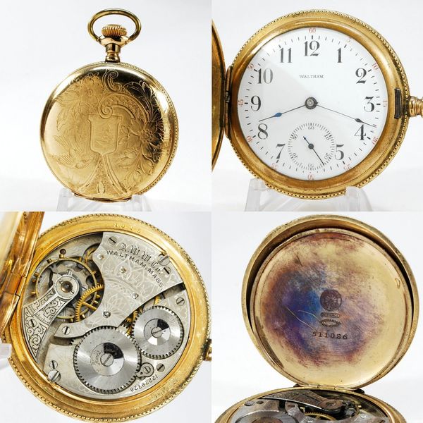One of the easiest American models to work on - the 18-size 7-jewel pendant-set Grade 1 Waltham hunter, running weakly and would no doubt benefit from a cleaning. Single-sunk Arabic dial has some light hairlines. S/N 16203290.